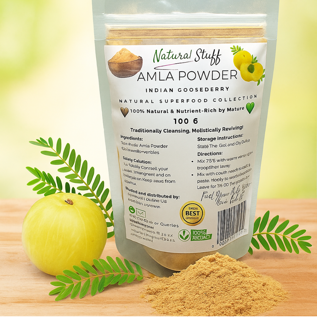 Our Natural Stuff Amla Powder is made from 100% natural, food-grade Indian gooseberries (Phyllanthus emblica), renowned for their exceptional nutritional value and centuries-old role in Ayurvedic wellness.