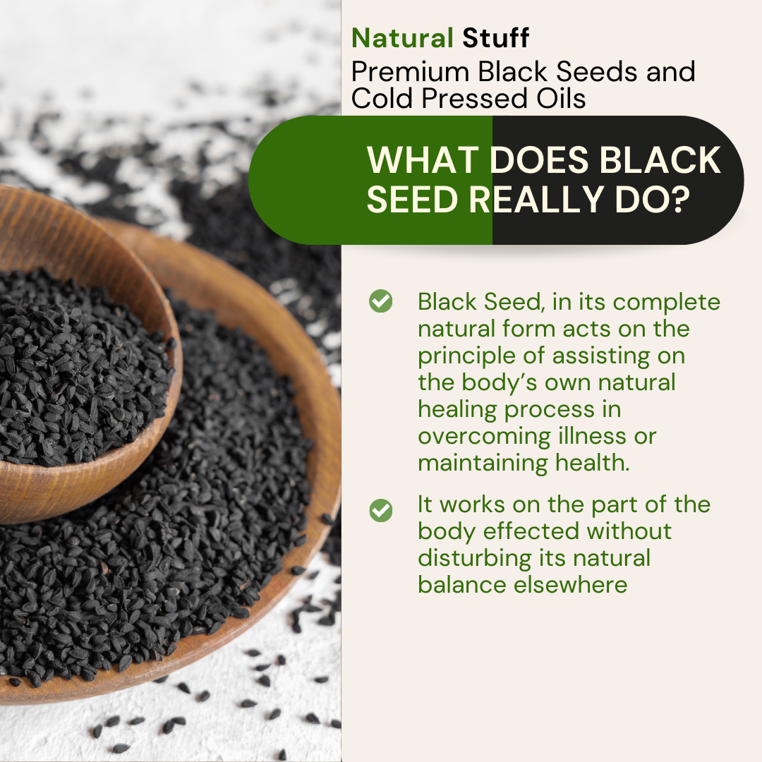 Experience the remarkable power of Natural Stuff Premium Black Seeds! It guarantees purity, is solvent-free, and contains thymoquinone (TQ) and essential fatty acids 3/6/9. Unleash the power of nature today!